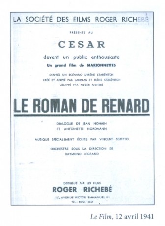 Évidemment à côté de cette phrase insupportable de De la Bretèque, les propos de la page 273 du n°105 de 1895 semblent anodins. Bien sûr Roger Richebé est producteur du Roman de Renard, il l’est au moment de la sortie du film en salle et le reste jusqu’à maintenant. Son rôle, pour ce film, a néanmoins été plus important que la simple production dans la mesure où le générique porte la mention « adapté par Roger Richebé », mais cette activité liée à la production et à l’adaptation s’est déroulée avant avril 1940, sinon comment expliquer, par exemple, la présence de ces mots du Roi qui, à la fin du film, reconnaissant qu’il ne peut soumettre Renard, déclare signer avec ce dernier « un pacte de paix et d’amitié », expression censurée en octobre 1940. (Ou bien l’expression « caporal de la garde » : caporal est le grade atteint par Hitler à la fin de la Première Guerre mondiale, et c’est par ce terme « le caporal » qu’Hindenbourg, Président de la République, appelait Hitler de façon méprisante même après l’avoir nommé chancelier.) C’est pour cette raison qu’il me semble erroné de lier cette activité de production à l’appartenance de R. Richebé au C.O.I.C. Il y a au minimum une confusion chronologique. Le travail de L. Starewitch avec R. Richebé pour la production et la réalisation du film ne se situe pas au moment où R. Richebé était membre du C.O.I.C., mais bien avant.