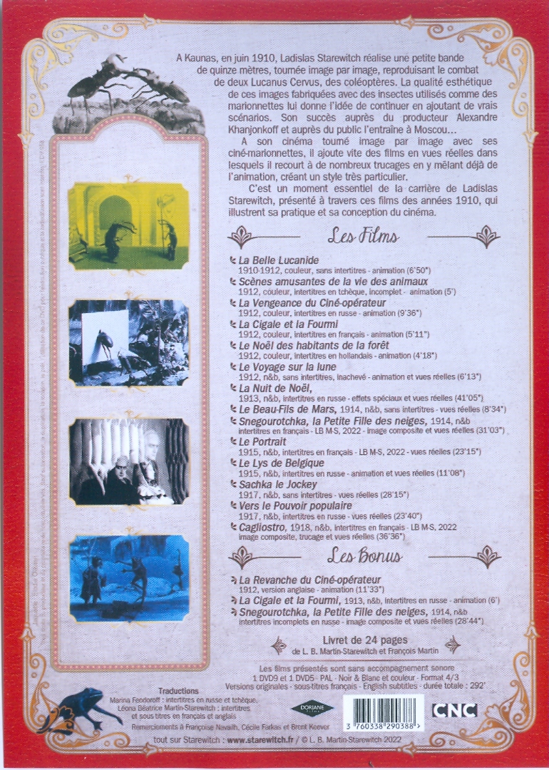 L. Starewitch a réalisé 64 films de 1909 à 1919, 15 sont conservés et 14 sont présents sur ces DVD.