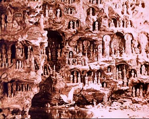 Tout d'abord, un film inspiré de l'imaginaire asiatique: "LES YEUX DU DRAGON" (25mn / 1925) où l'on est bluffé par l'utilisation de décors monumentaux et des plans d'ensemble, notamment le mur des idoles qui est assez impressionnant.