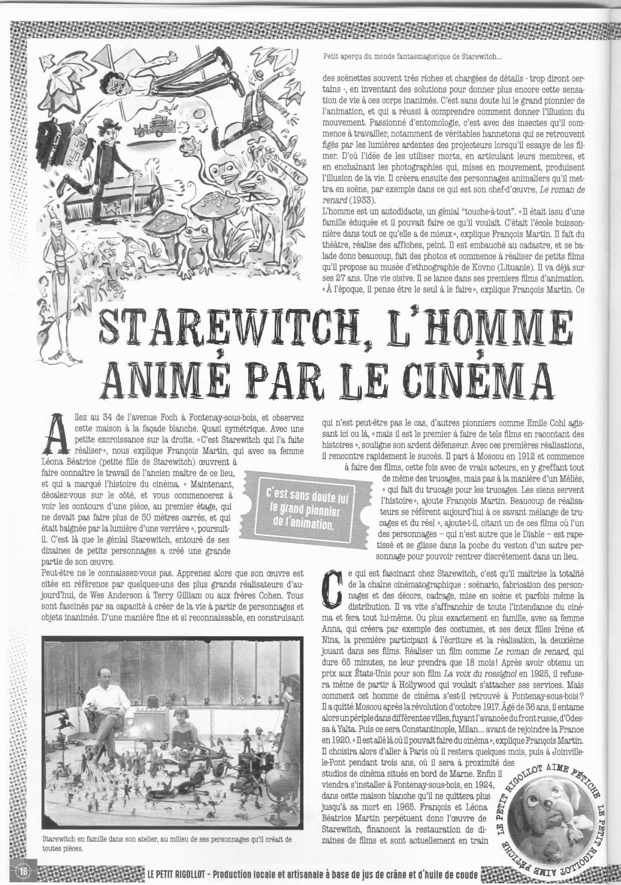 On y retrouve le texte consacré à Ladislas Starewitch avec une illustration enrichie par de belles photos de l’exposition WILLY RONIS  La Banlieue Est sous l’œil d’un maître qui a eu lieu au Musée intercommunal de Nogent-sur-Marne montrant Ladislas et sa fille Irène dans ce studio de Fontenay.