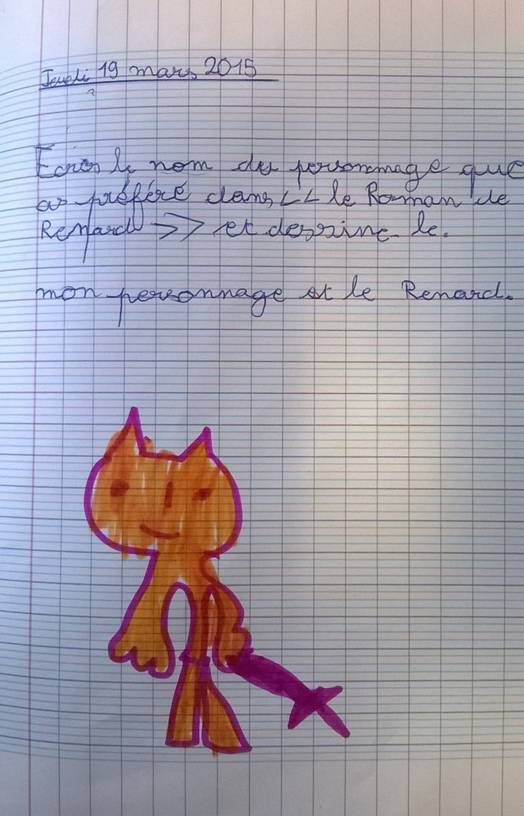 Le mercredi 19 mars 2015, Béatrice, la petite fille de Ladislas Starewitch présente Le Roman de Renard et des marionnettes dans trois classes de l'école primaire, rue de Curial, Paris 19ème arrondissement.