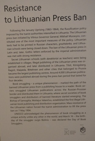 Des documents exposés dans le musée national à Vilnius expliquent le contexte de l’introduction de cette écriture appelée Grazhdanka.